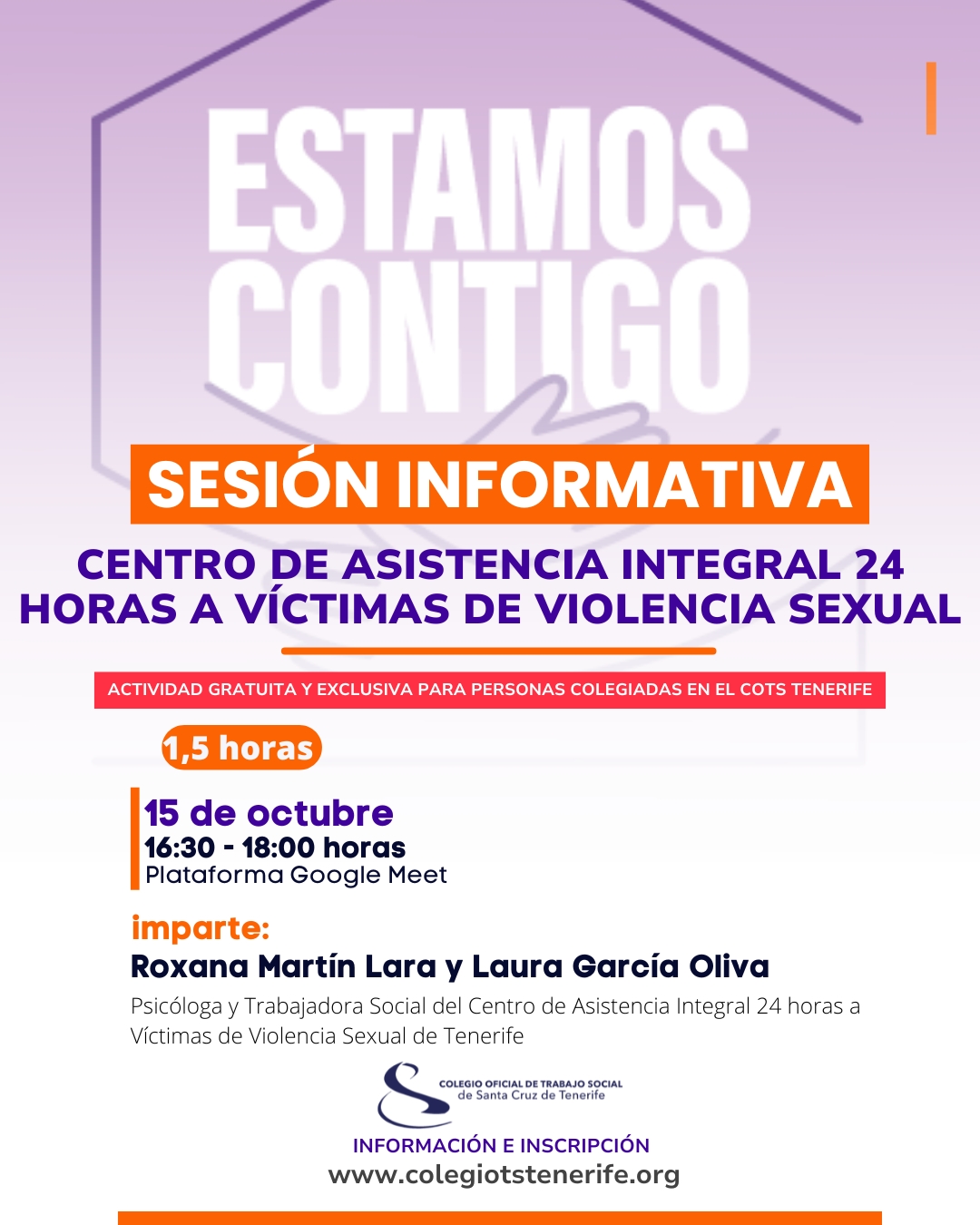 - Inscripción: gratuita y exclusiva para personas colegiadas en el Colegio Oficial de Trabajo Social de Santa Cruz de Tenerife.