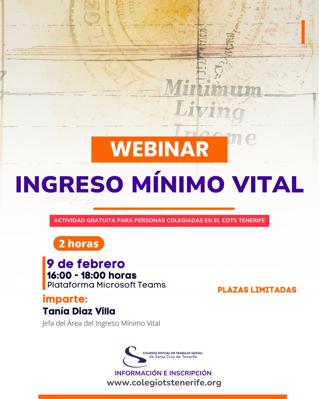El Colegio Oficial de Trabajo Social de Santa Cruz de Tenerife organiza la Webinar - "Ingreso Mínimo Vital".